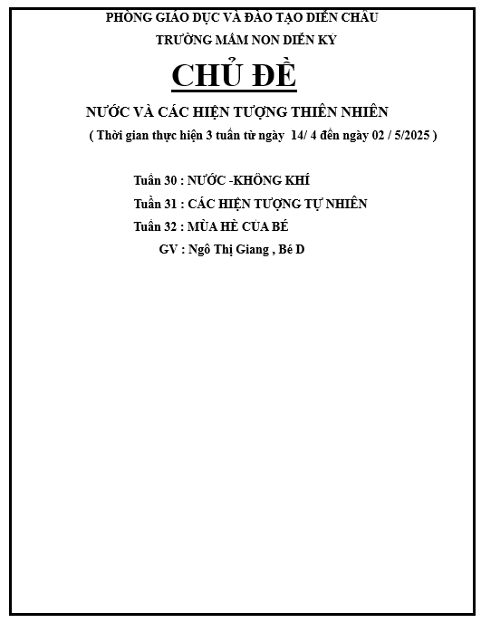kế hoạch giáo dục chủ đề nước, httn, hường, bé e